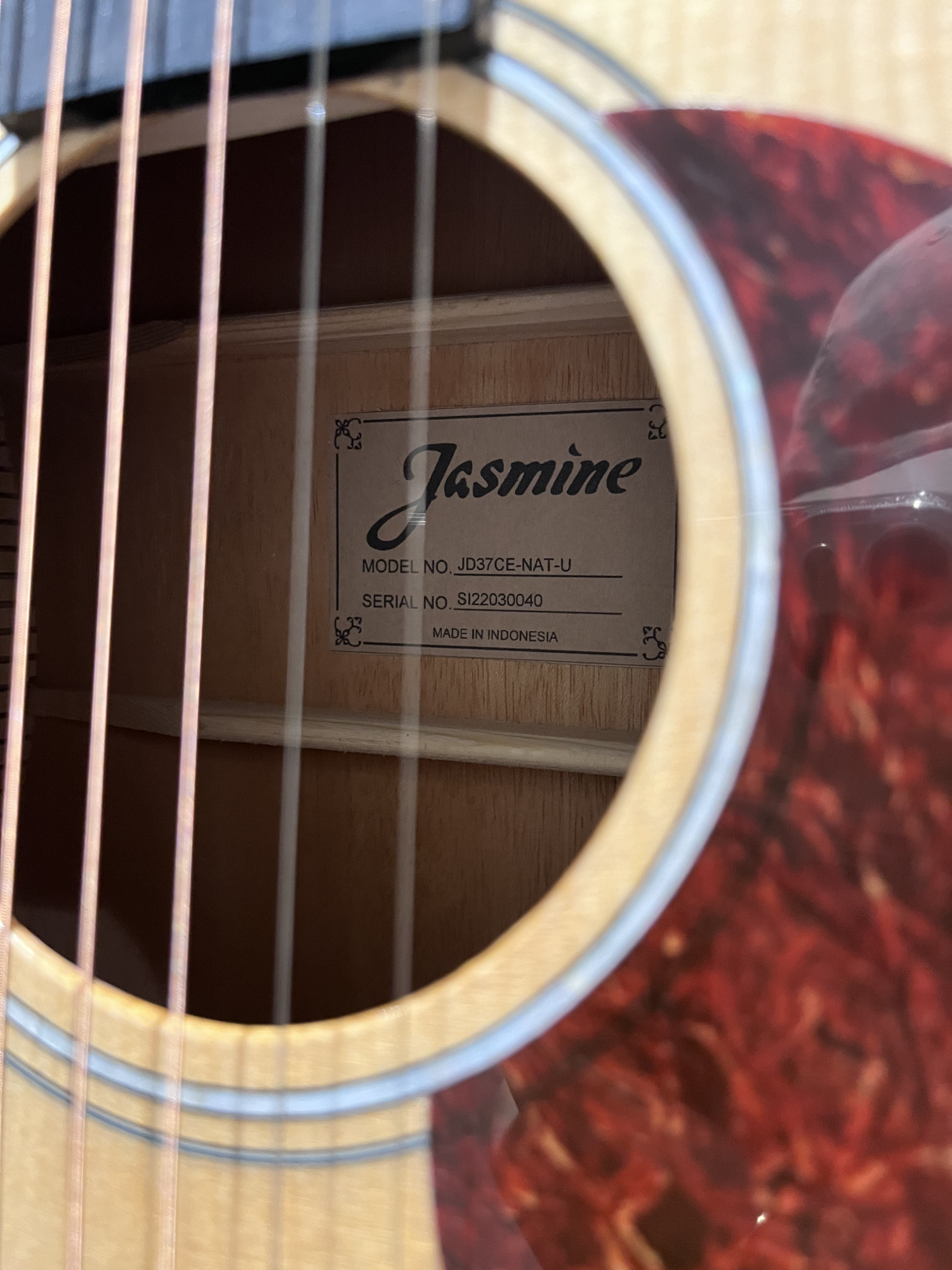 The Jasmine JD37CE‑NAT‑U is a well-crafted acoustic-electric dreadnought designed for players who want classic tone, modern playability, and stage-ready electronics.